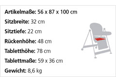 Der multifunktionelle Kinderhochstuhl Aro kann in der Sitzhöhe, der Esstischposition, der Rückenlehne und der Fußstützenlänge und -neigung schnell und einfach verstellt werden.