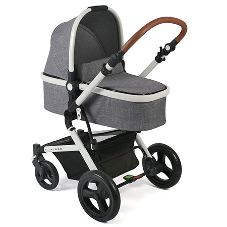 Modernes Kinderwagen-Set bestehend aus geräumiger und weich gepolsterter Babywanne und Sportwagenaufsatz mit komfortabler Einhand-Rückenverstellung. Wendbarer Sport- und Liegeaufsatz – je nach Wunsch kann Ihr Kind Sie anschauen oder in Fahrtrichtung blicken.