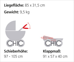 Moderner, komfortabler Sportwagen mit höchstem Sitz-und Liegekomfort. Extrem wendig und flexibel durch die gefederten, schwenk- und feststellbaren Doppelvorderräder